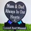 – Personalised design inspired by: Mum & Dad Heart Shape Memorial Plaque Graveside Decoration Tribute Butterflies