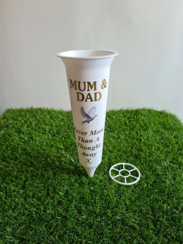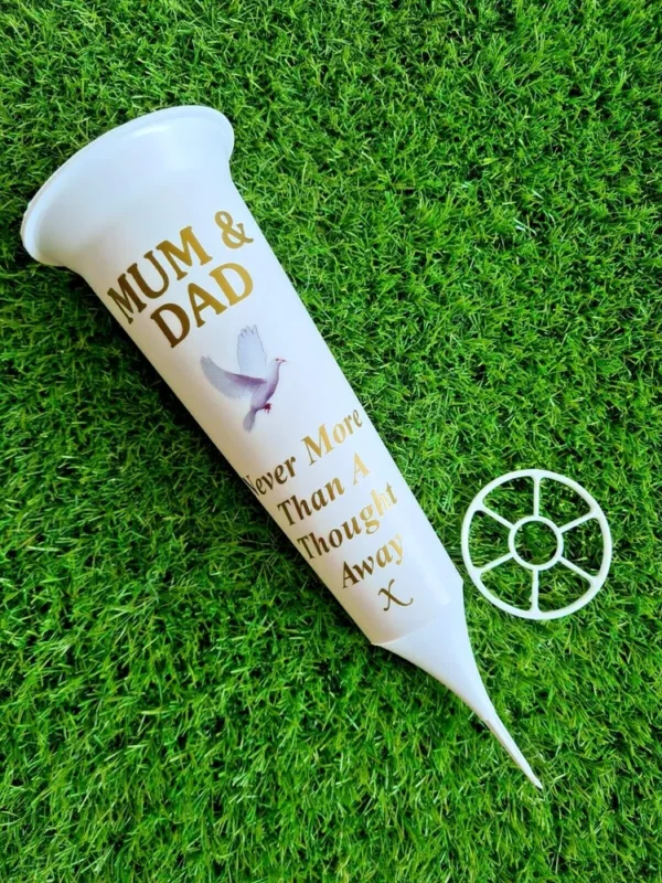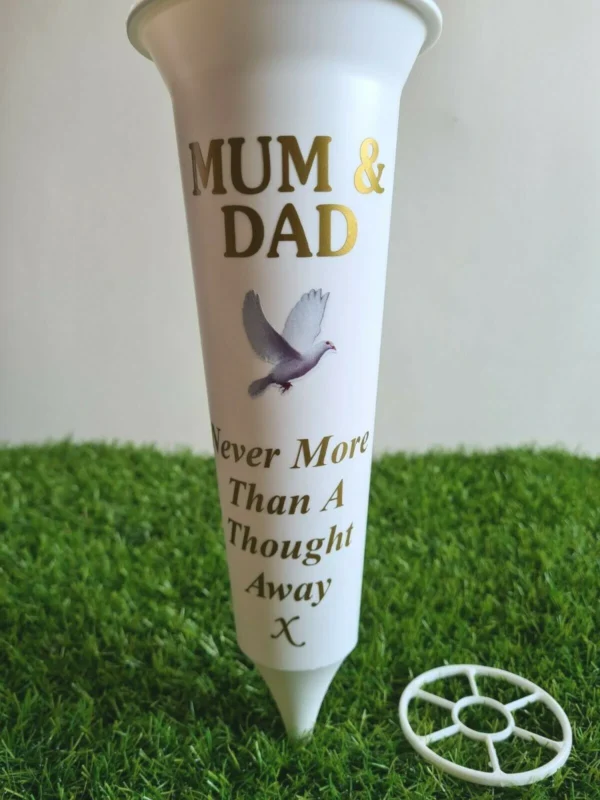 – Personalised design inspired by: MUM & DAD White Memorial Flower Vase Grave Marker
