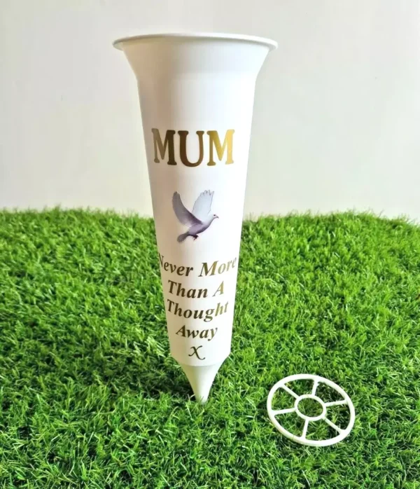 – Personalised design inspired by: MUM White Memorial Flower Vase Grave Spike Marker, Graveside Decoration