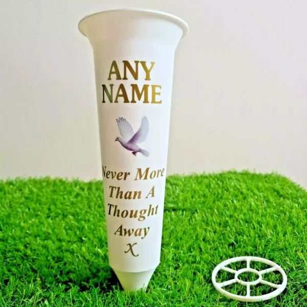 – Personalised design inspired by: Personalised White Memorial Flower Vase for Graveside Decoration With Dove